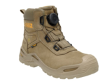 The DeWalt Lander BOA® work boot is designed for superior protection and comfort. Its nubuck leather upper is durable and water-resistant, while the BOA® fit system ensures a precision fit. The composite toe cap and midsole provide supreme protection in hazardous environments, and the toe scuff guard ensures long-term wear. A wider fit adds an extra layer of comfort and stability. Sturdy PU/Rubber outsole which is certified for ladder grip, resistance to fuel oil, scuff cap resistance, slip resistance and heat and oil resistant to 300 degrees celcius. The Lander is also certified to ESD standards. Find your ideal fit with the DeWalt Lander BOA® work boot.